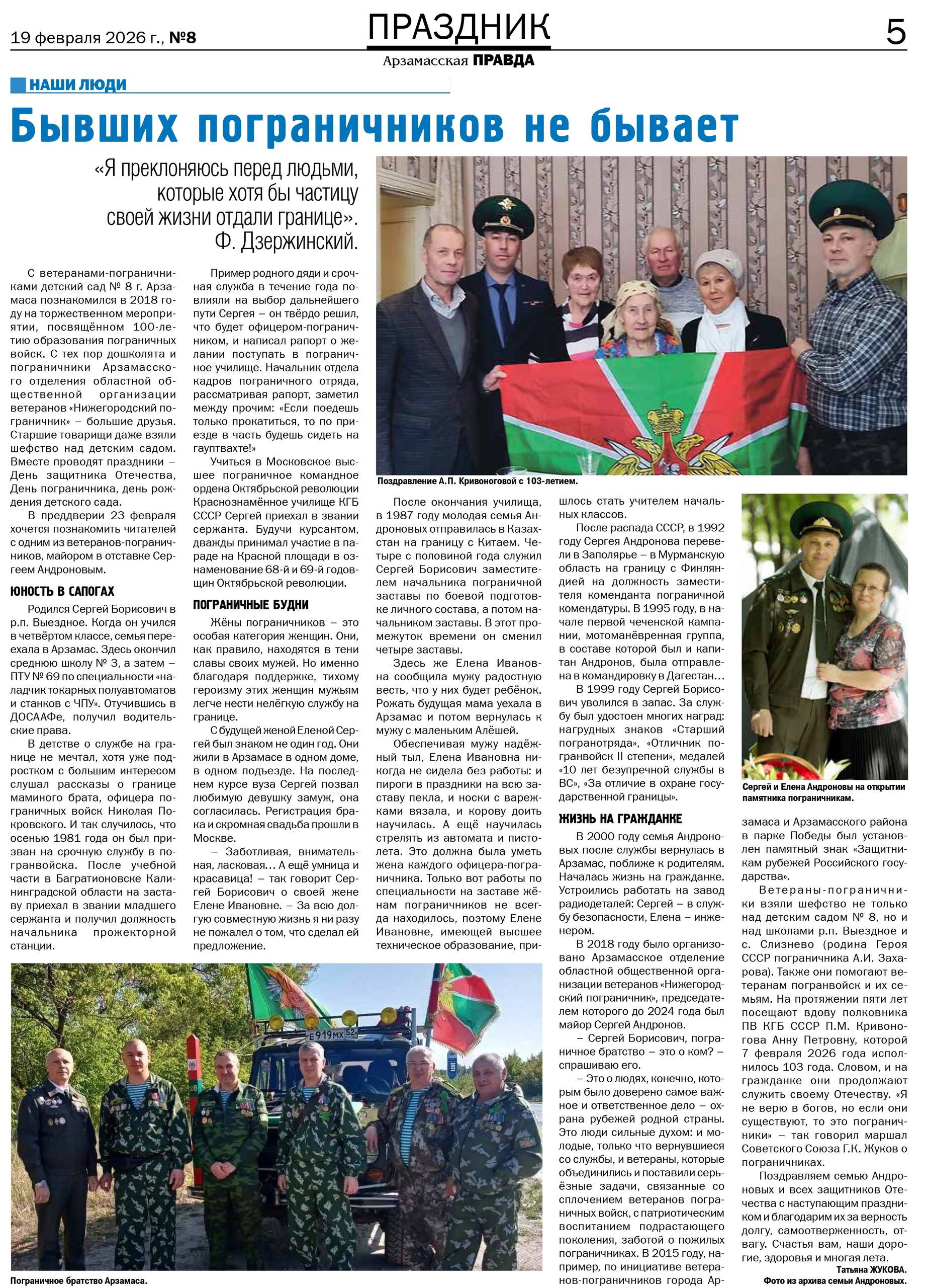 «АРЗАМАССКАЯ ПРАВДА» О ПОГРАНИЧНИКАХ