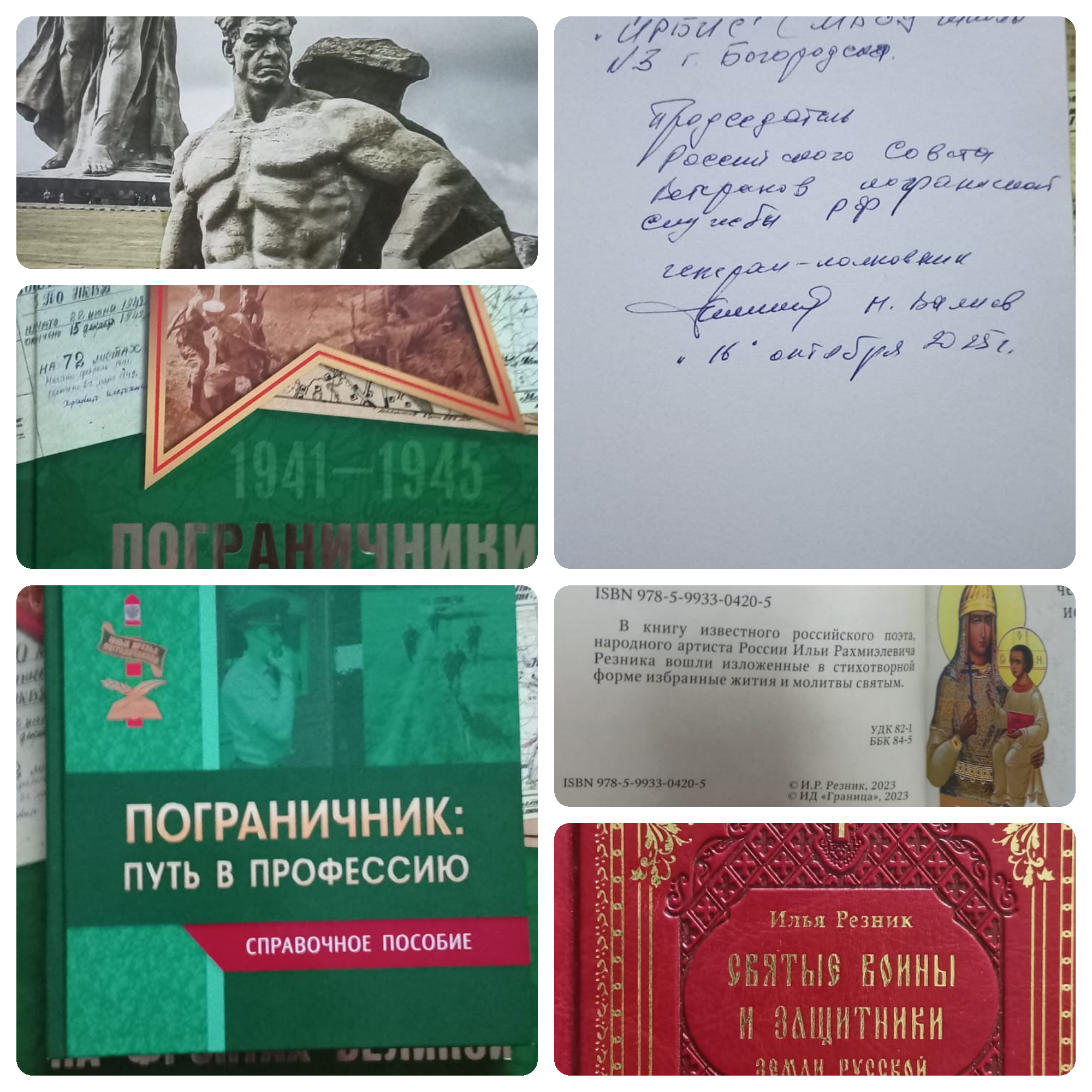 От Центрального пограничного музея ФСБ РОССИИ, от председателя Российского Совета Ветеранов пограничной службы РФ, заслуженного пограничника России, генерал-полковника Валиева М. М. Юнармейскому пограничному отряду » Ирбис »   были вручены памятные книги.