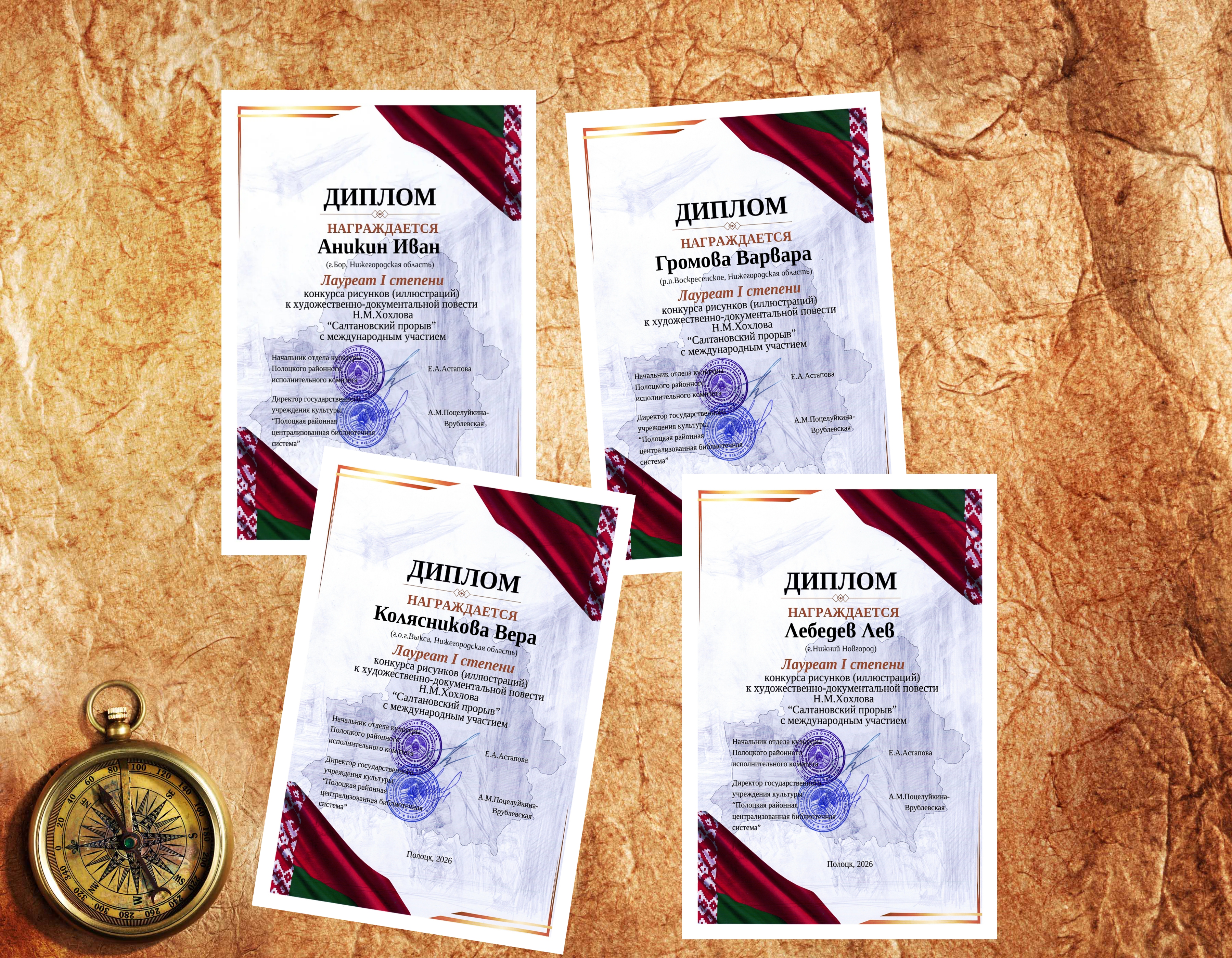 В период с 15 октября 2025г. по 30 января 2026 г.  учащиеся военно-патриотических клубов НОООВ «Нижегородский пограничник» приняли участие в конкурсе рисунков (иллюстраций) с Международным участием к художественно-документальной повести Н.М. Хохлова «Салтановский прорыв», посвященном 80-летию Победы Советского Союза в Великой Отечественной войне.