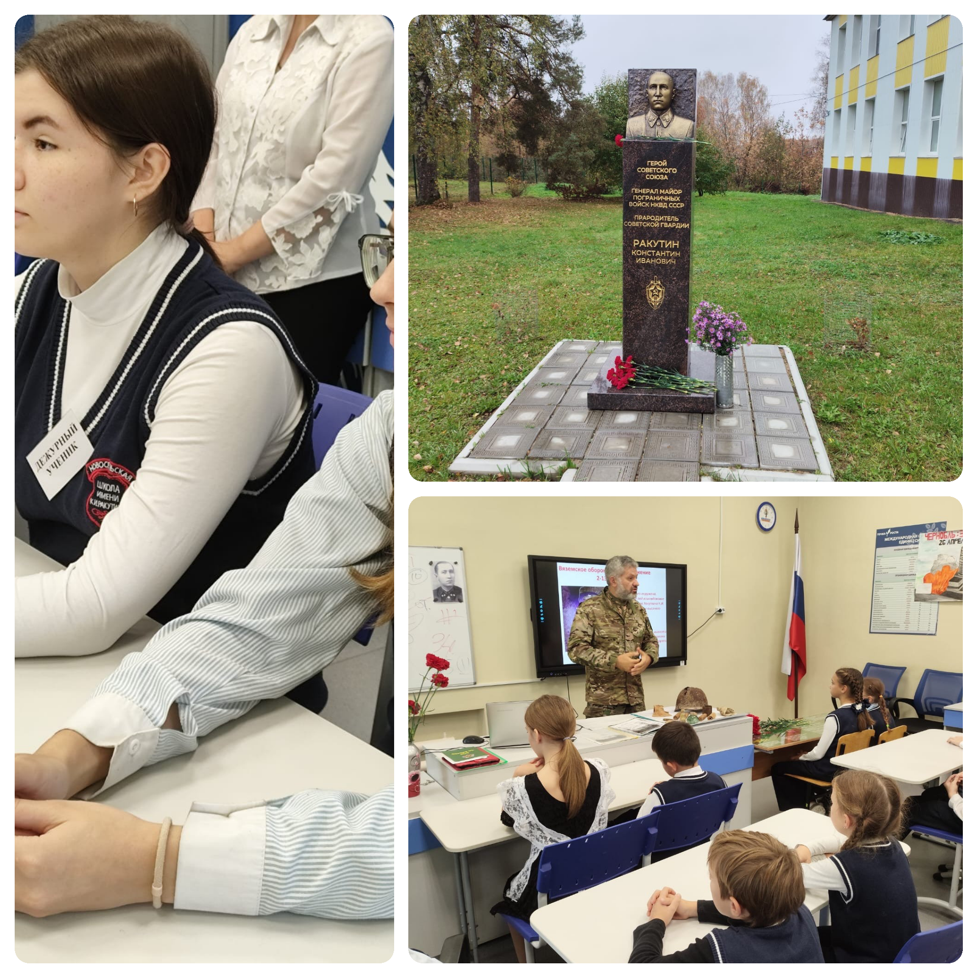 После урока участники возложили цветы к бюсту Ракутина, который был установлен силами пограничников — символу бессмертия его подвига и напоминанию, что герои не умирают, пока о них помнят.