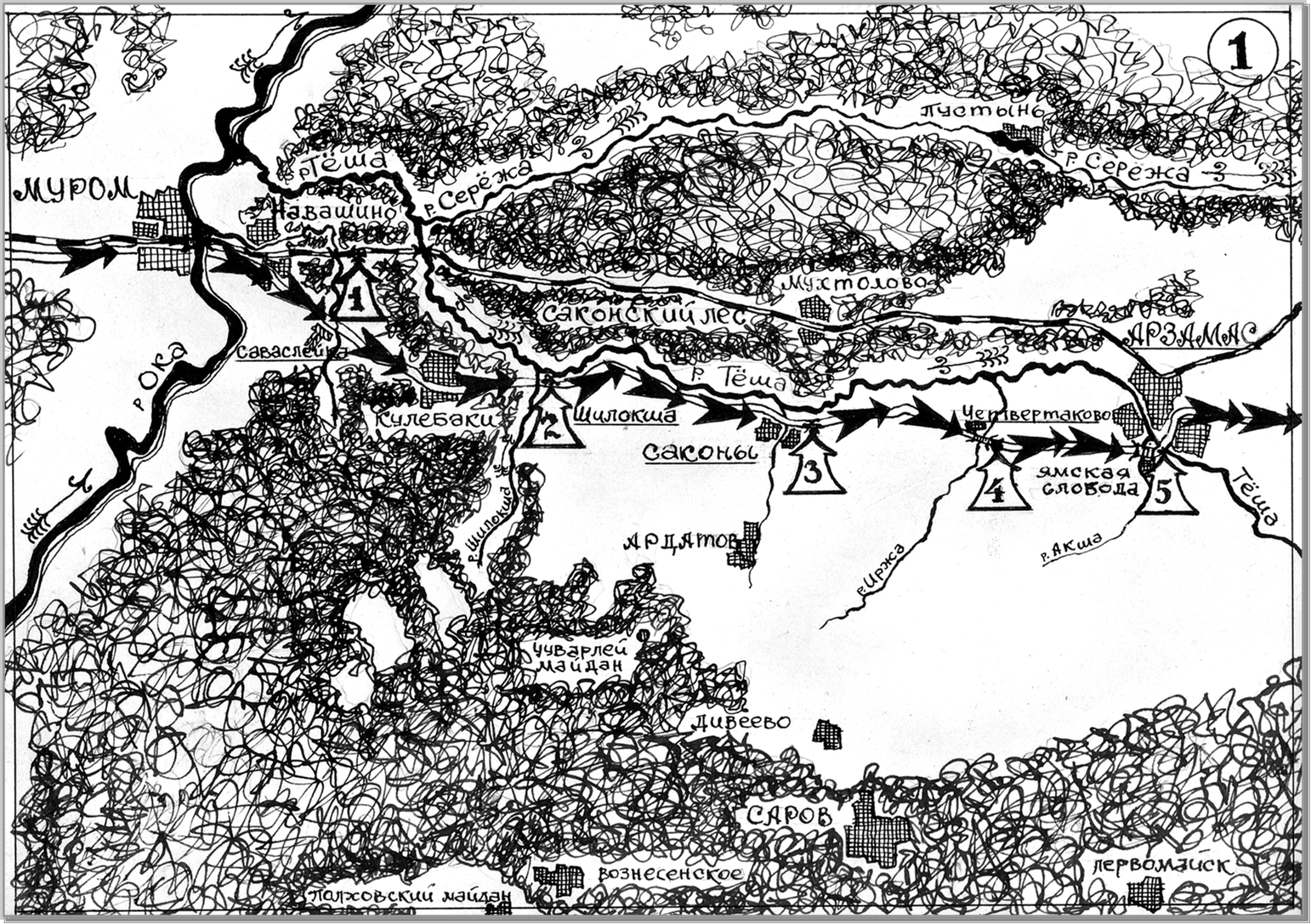 Можно с уверенностью утверждать, что до середины 16 века все вышеперечисленные населенные пункты были подконтрольны Казанскому ханству. Во время похода эти земли, как сейчас принято выражаться, находились в «серой (нейтральной) зоне». Хотя наши передовые отряды заранее позаботились о безопасности основного русского войска. Во взаимодействии с местным населением оборудовали места стоянок, наводили переправы через речки, рубили просеки, даже засыпали болота, как было в районе нынешних Кулебак (согласно народной легенде).