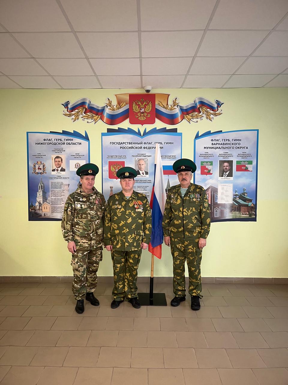 На мероприятии присутствовало много важных гостей, в их числе заместитель главы администрации Варнавинского округа Воронов А.А., заместитель Председателя Варнавинского отделения ветеранов пограничной службы Широченков В.А., начальник управления образования округа Малинова Е.А., военный комиссар по Краснобаковскому и Варнавинскому округам Лебедев Д.В., инспектор ПДН Воронова Н.П. и отец Героя России, полковник в отставке Перов В.А.